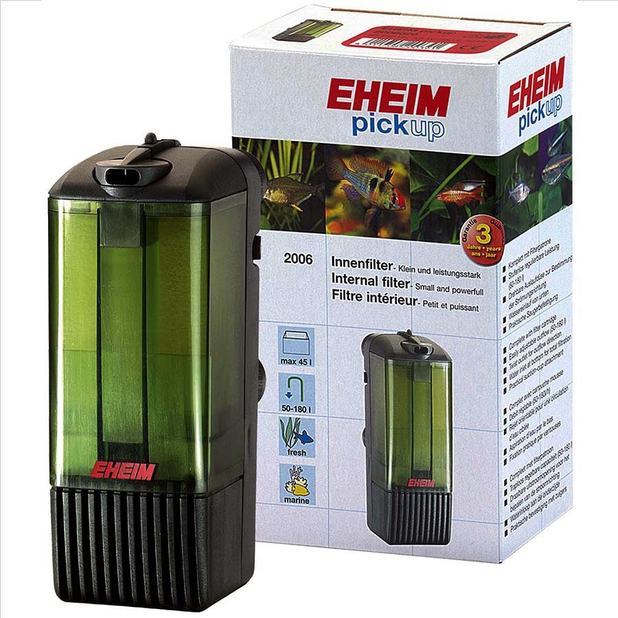 Eheim filters, quality-made in Germany, come in a mini-size for tanks between 20-30 litres and pick up filters for tanks of 45L, 60L, 160L and 200L. The term “pick up” means you can lift the filter media from the top when changing it without removing the pump from the water.