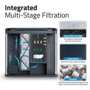 RGB + White LED lighting (6500-7000K) supports live plant growth and enhances fish colours
